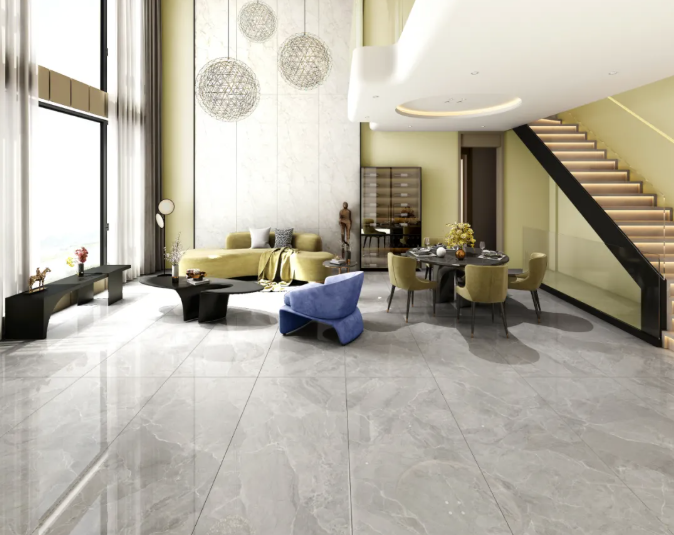 以盧卡深灰作地面鋪貼,灰色作為主色調,黑、白等顏色為輔助色彩,空間既不會因灰色而顯得深沉,也不會過于艷麗,卻能讓人一眼便能分辨主次。金屬質感的燈具、茶幾點綴其中,愜意、舒適、自然的氣息充滿整個空間,令一石多面紋理更加連貫、氣派,給空間帶來前所未有的時尚趣味。