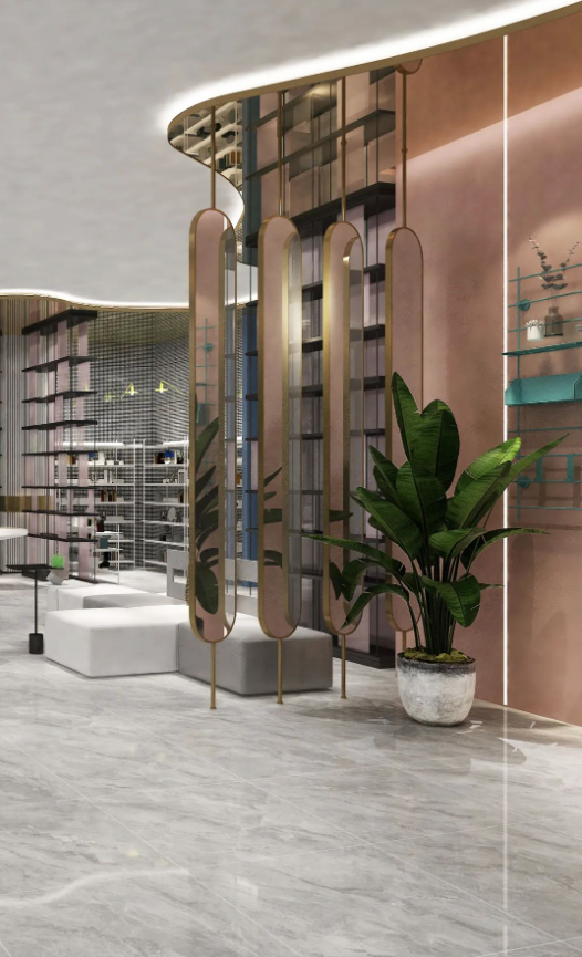 質(zhì)感通透的自由連紋通體大理石,在燈光的照射下泛起點(diǎn)點(diǎn)柔光,自由連紋讓空間視野無(wú)限延伸,金屬元素的不規(guī)則運(yùn)用,寬敞明亮的同時(shí)極具設(shè)計(jì)感。