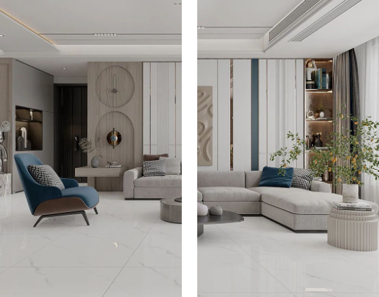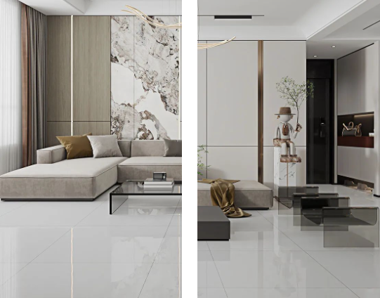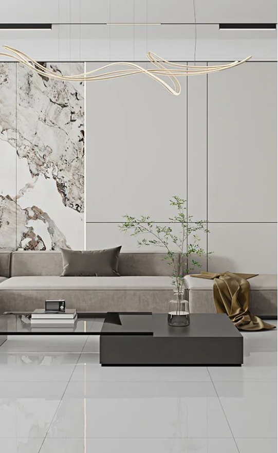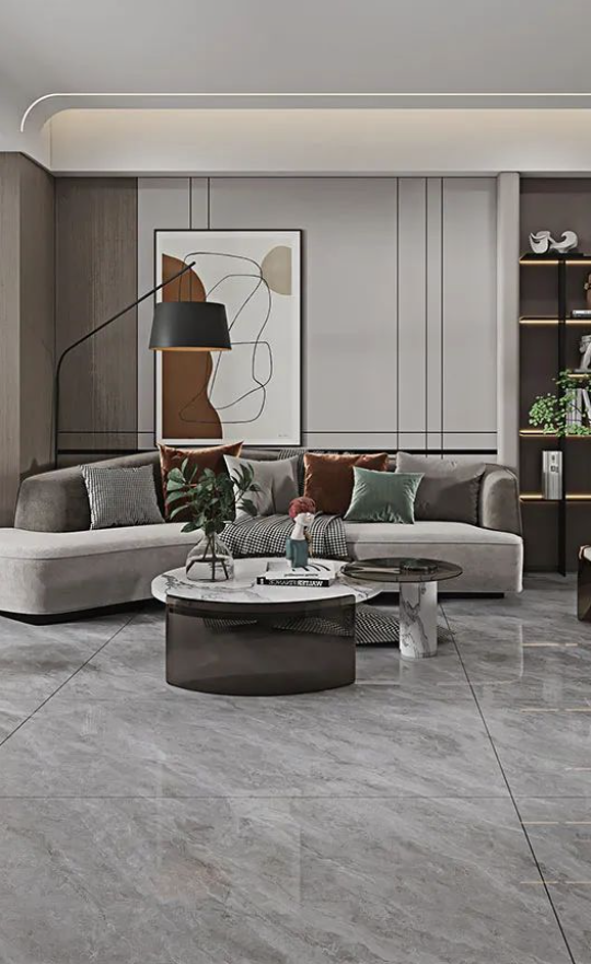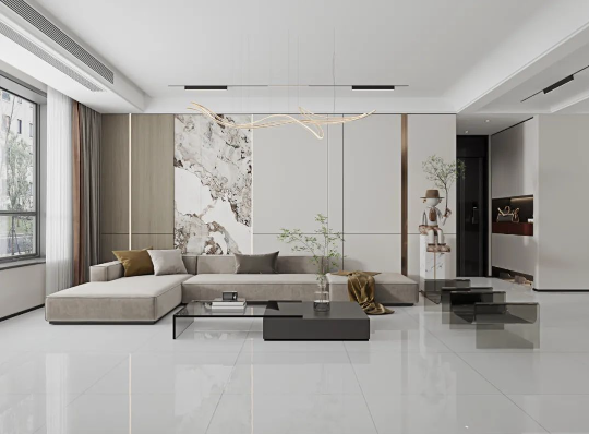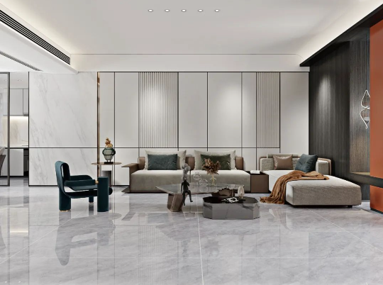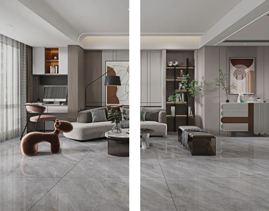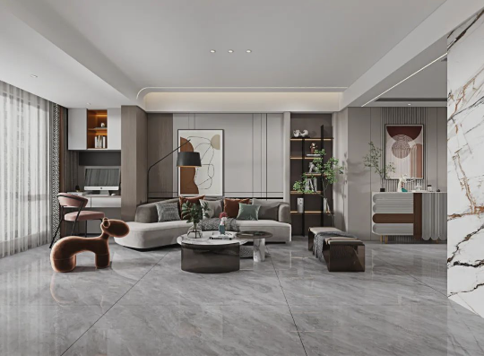 客廳作為家庭中最大的公共區(qū)域,是居住者和外客活躍的地方,地面鋪貼必須要防滑防污易打理,同時(shí)也要美觀大氣,在整體氛圍營(yíng)造上,也需要體現(xiàn)家的溫馨。