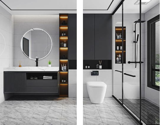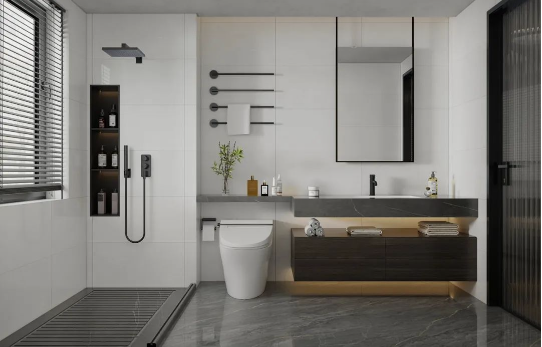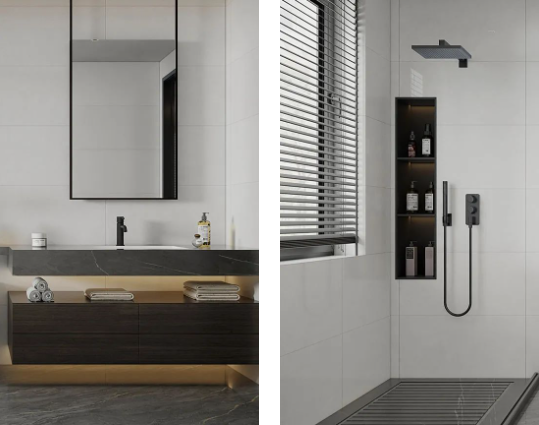 暖色系的浴室,低飽和度的色溫,克羅伊淺灰色調(diào)余韻深遠(yuǎn),上墻應(yīng)用更溫暖,拂走雜亂思緒,令用戶心安,提升衛(wèi)浴空間的和諧性與美觀性。