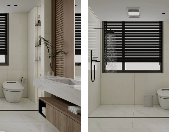 哥倫比亞白通體自帶的爽朗現(xiàn)代感,結(jié)合大理石紋進(jìn)行通鋪,讓衛(wèi)浴間格外明亮之余,無(wú)限連紋拉伸空間視覺(jué)比例,給人一種賞心悅目的天然感受。