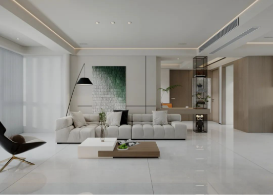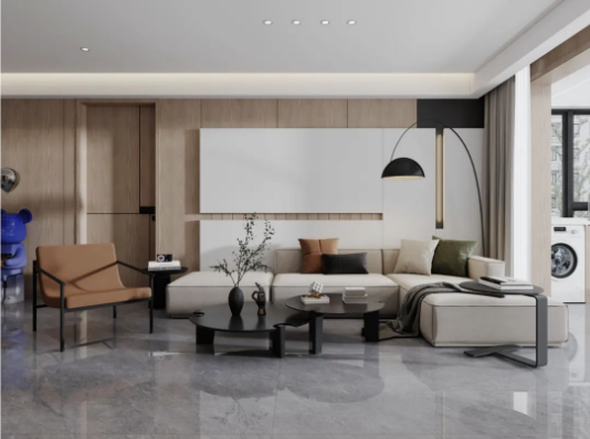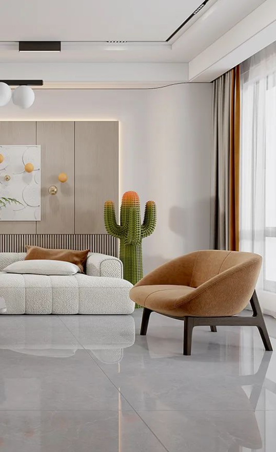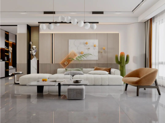 900X1800mm哈瓦蘇大面積地延伸于空間,石材自然的肌理,流暢的紋路,給人大自然的親近之感,開闊空間及通透陽光磨合了留白帶來的空洞感,木紋與綠色的點(diǎn)綴溫和治愈之余讓空間富有活力。